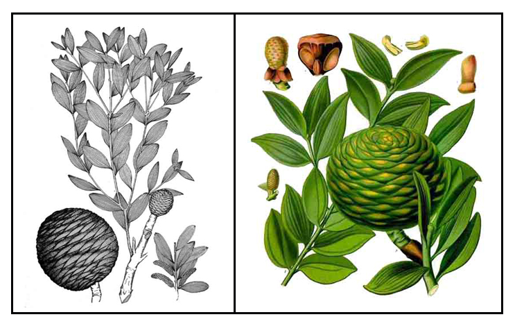 - Botany: Almaciga is a large tree with a pyramidal crown and whorled branches, growing to a height of 50 to 60 meters, the trunk up to 3 meters in diameter with a smooth and graying bark exuding resin. Leaves are simple, opposite or nearly so, entire and leathery, oblong-lanceolate to linear-lanceolate, obtuse, 3 to 9.5 centimeters long, 1 to 2.5 centimeters wide. Male cones are cylindrical-oblong, 1.5 to 5 centimeters long.